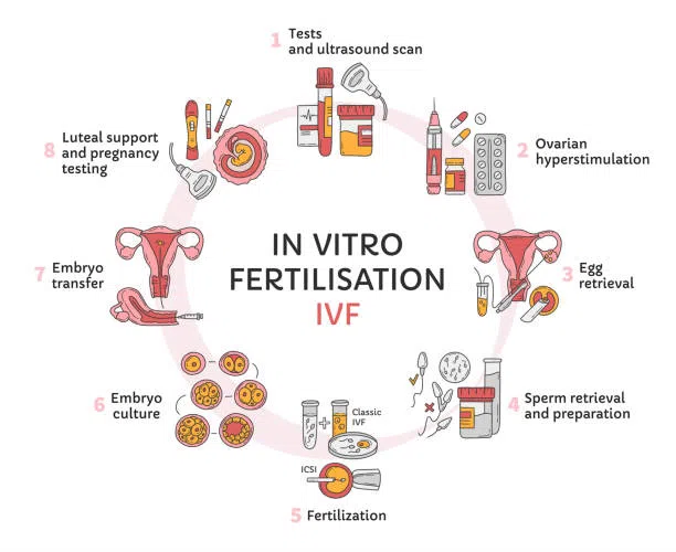 IVF Fertilization: These eggs are fertilized with sperm in a lab, forming embryos.